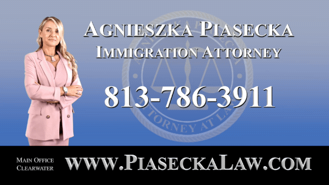 Adwokat Agnieszka „Aga” Piasecka urodziła się w Polsce, wyemigrowała do USA, gdzie uzyskała zieloną kartę, a następnie obywatelstwo amerykańskie. Agnieszka Piasecka osobiście doświadczyła procesu imigracyjnego w Stanach Zjednoczonych i ma wiedzę oraz doświadczenie, które pomogą Ci w uzyskaniu Zielonej Karty i obywatelstwa Stanów Zjednoczonych w hrabstwach Sarasota i Manatee oraz okolicach.